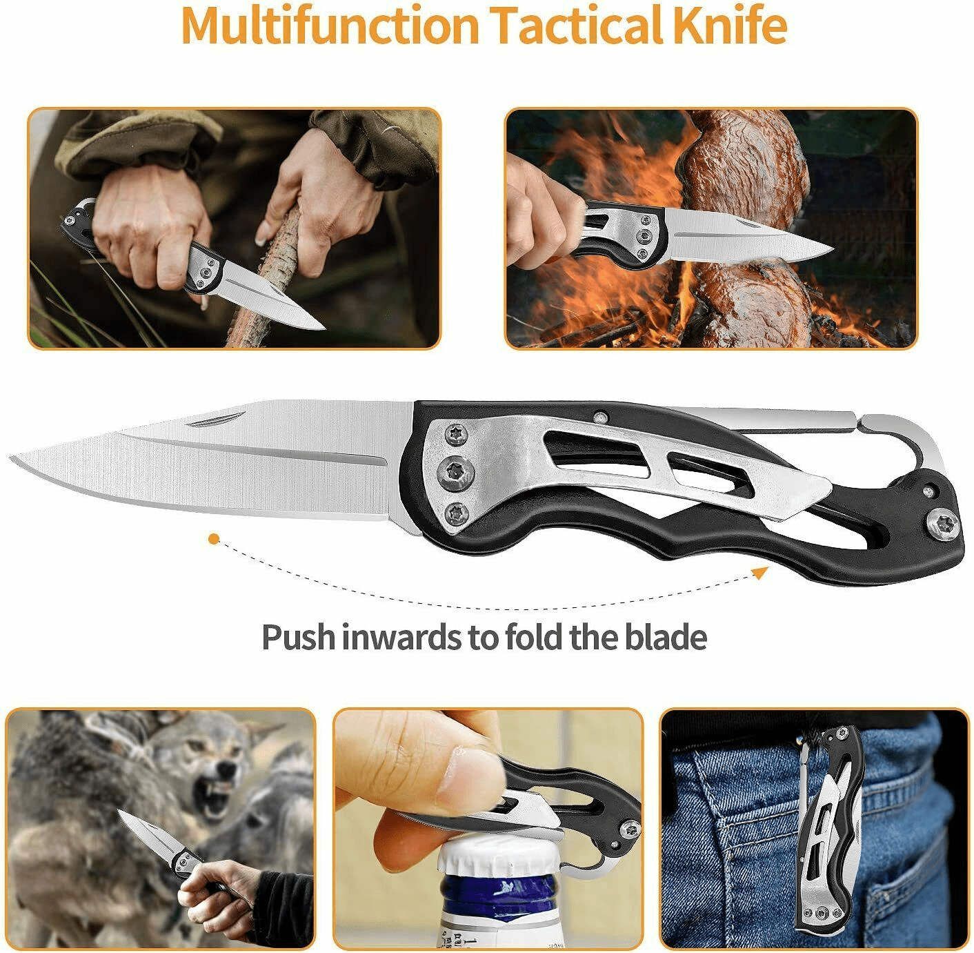 COOL GIFT - Everyone is likely to encounter some urgent situations. The Survival Kit is a must-have tool in your life. Whether you are camping; hiking; adventurous; living or trapped in a car; you can use it in an emergency. A perfect gift for you who are adventurous. You can also exercise the courage of a child. You can prepare a few more at home and in the car.