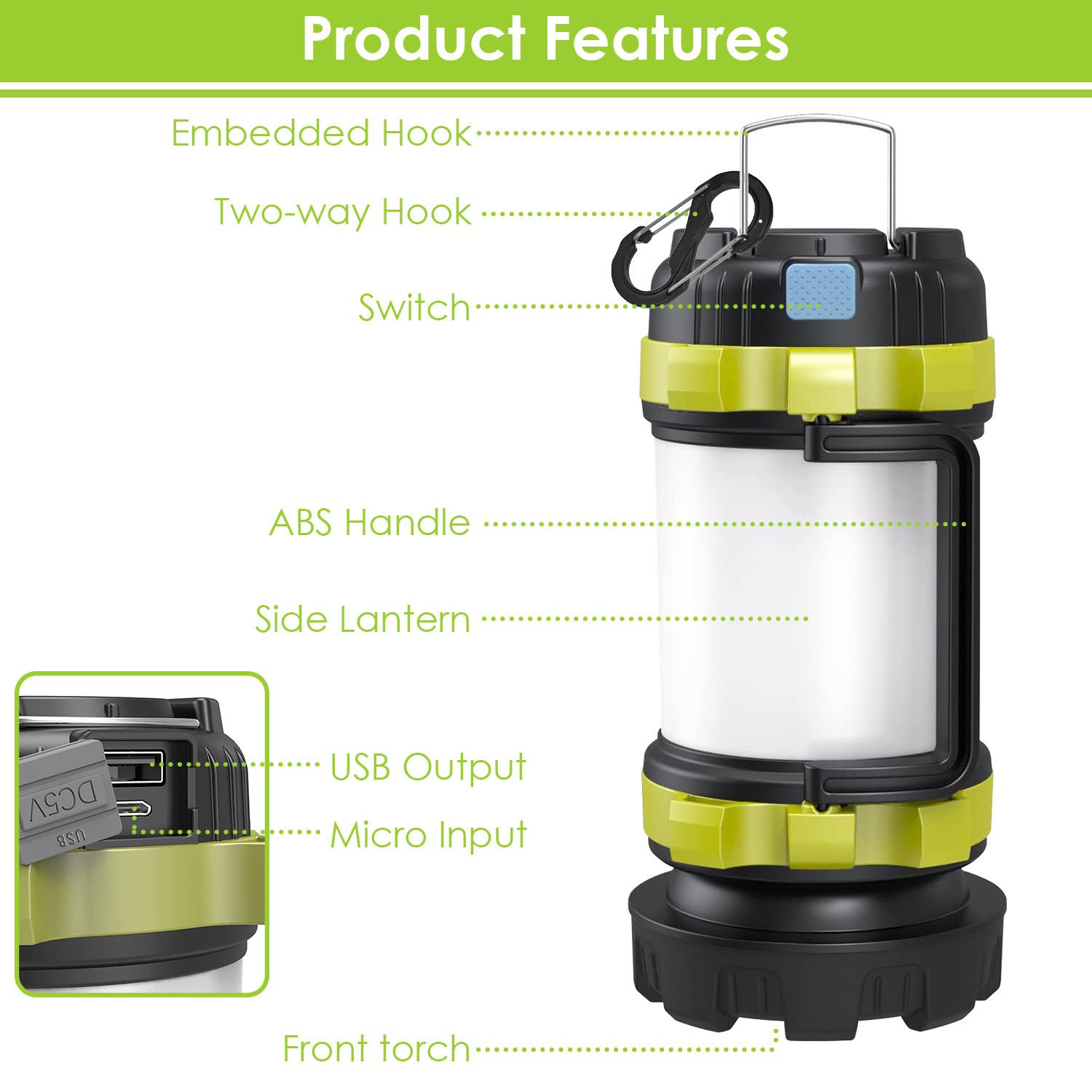 *Rechargeable & Emergency Power Bank*:After being fully charged for 6hrs; it can work continuously for 10hrs. No need to charge it frequently. Besides; this lamp with extra USB output can also turn into an emergency power supply when your phone is dead during adventure.