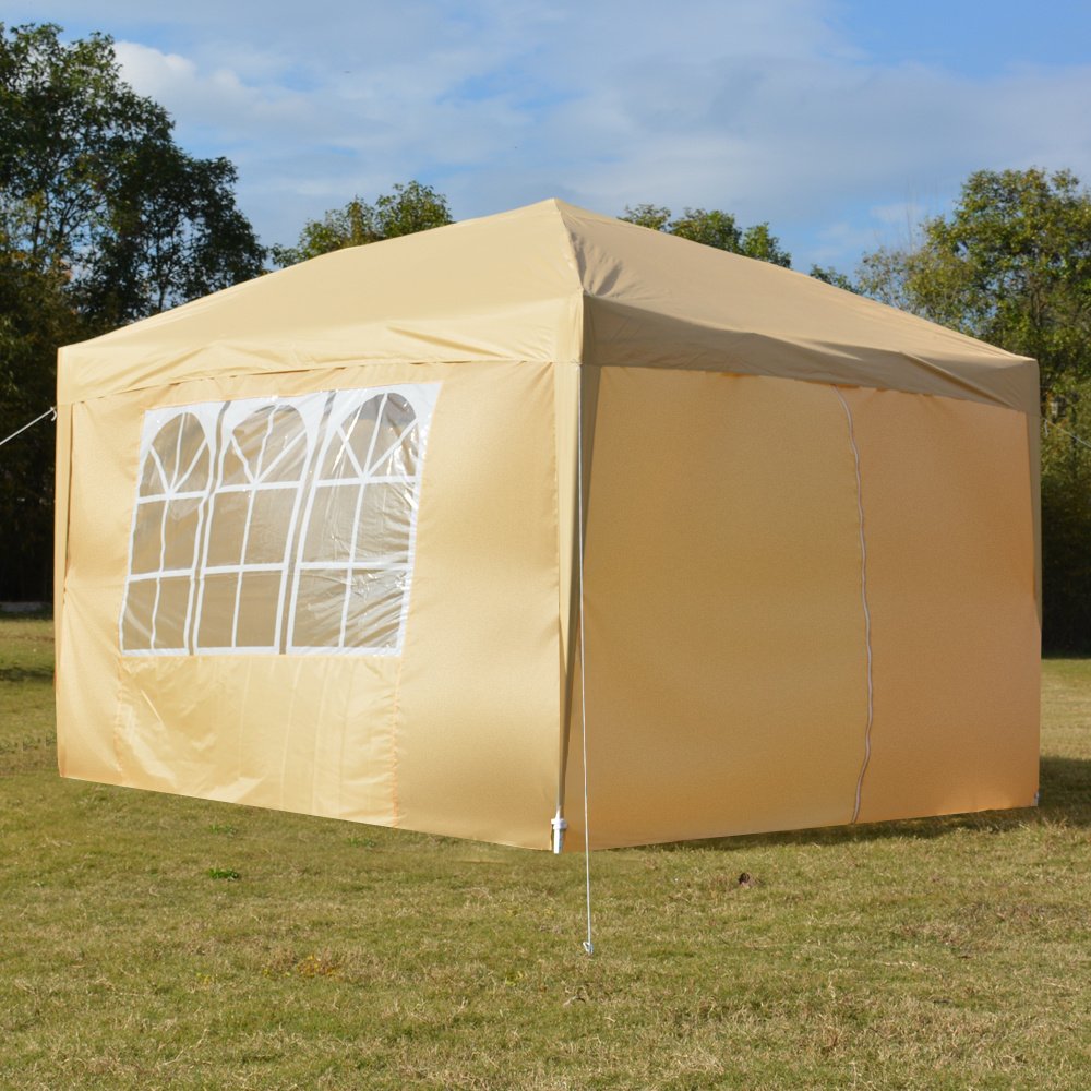 Introductions:Tent is a practical item for daily use, widely seen in the outdoor activities such as camping or picnic. If you happen to need a tent for own use, this 3 x 3m Two Doors & Two Windows Practical Waterproof Right-Angle Folding Tent may be a great choice. It is designed into 4 sides, with 2 doors and 2 windows that ensure good ventilation. Made of premium 210D oxford material and steel materials, it is of great durability and solid structure. Waterproof fabric makes it suitable for outdoor use. It is easy to install and use. Most of all, it is quite space-saving when it folds. A convenient and stylish item!Features:1. New and in a good condition2. First-rate steel and 210D oxford materials, fine workmanship and meticulous treatment3. Excellent ventilation with 2 doors and 2 windows4. Won't take up too much space when it is folded5. It is a sort of waterproof item, fit for outdoor use especially6. Protect you from scorching sun light and rainSpecifications:1. Material: White Powder Coated Steel Frame & WaterProof 210D Oxford Fabric Cover2. Color: Khaki3. Dimensions: (116 x 116)" / (296 x 296)cm (L x W)4. Weight: 25.79lbs / 11.7 kg5. Waterproof: Yes6. Suitable for: All Kinds Of Events7. Height of Sides: 77" / 196cm8. Height of Roof: 103" / 262cm9. Crossed Pipe/Top Pipe Diameter: (0.4 x 0.7)" / (1.0 x 1.8)cm (L x W)10. Tent Structure: Single Tent11. Door Quantity: 2 Pcs12. Window Quantity: 2 PcsPackage Includes:1 x Tent1 x Carry Bag1 x Instruction