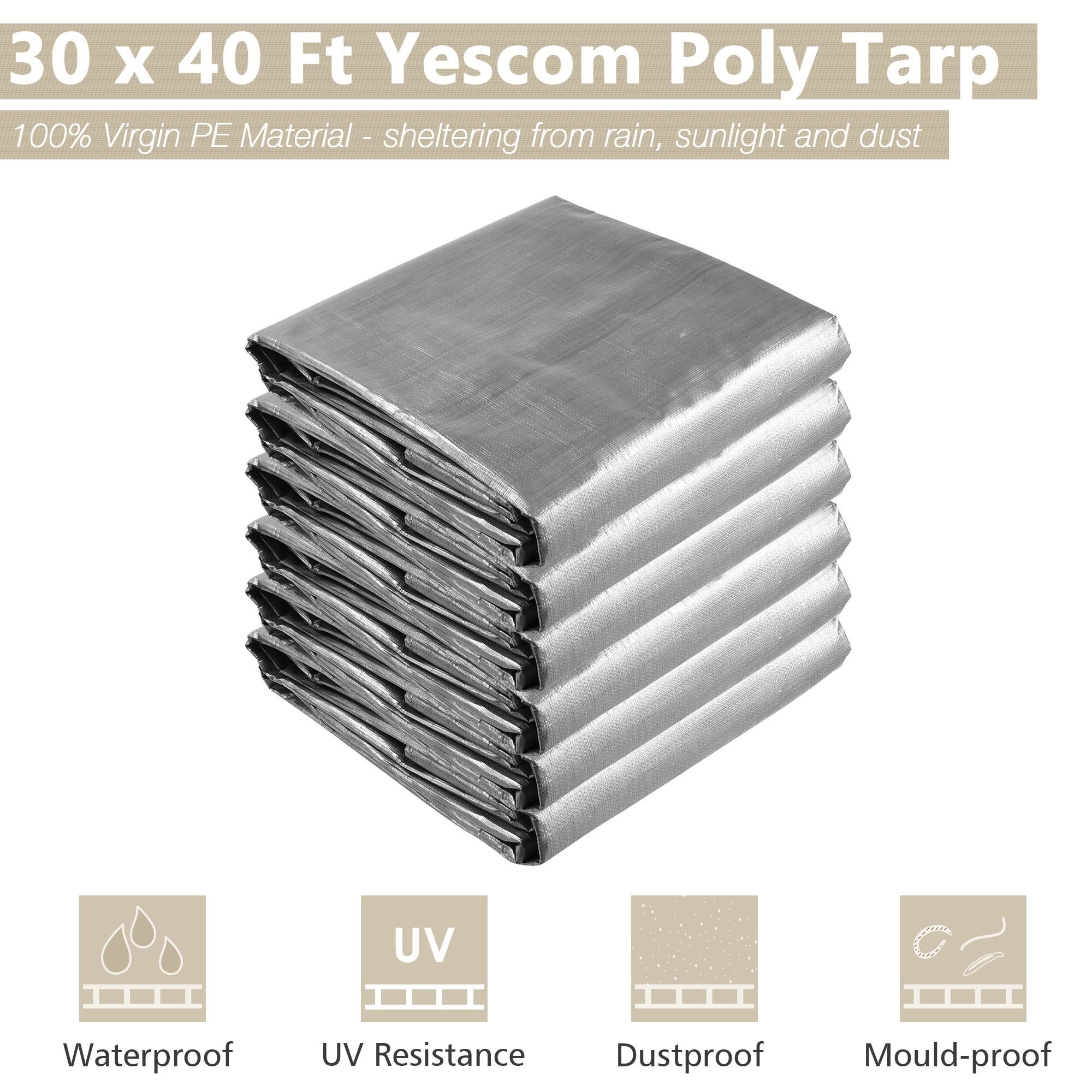 - Strong & Durable Shelter - 30 x 40 ft silver and black poly tarp forms a strong and durable shelter from sunlight; rain and dust; cooler underneath in the summer; Long lifetime up to 3 years; it features good ability of anti-aging for long-time use