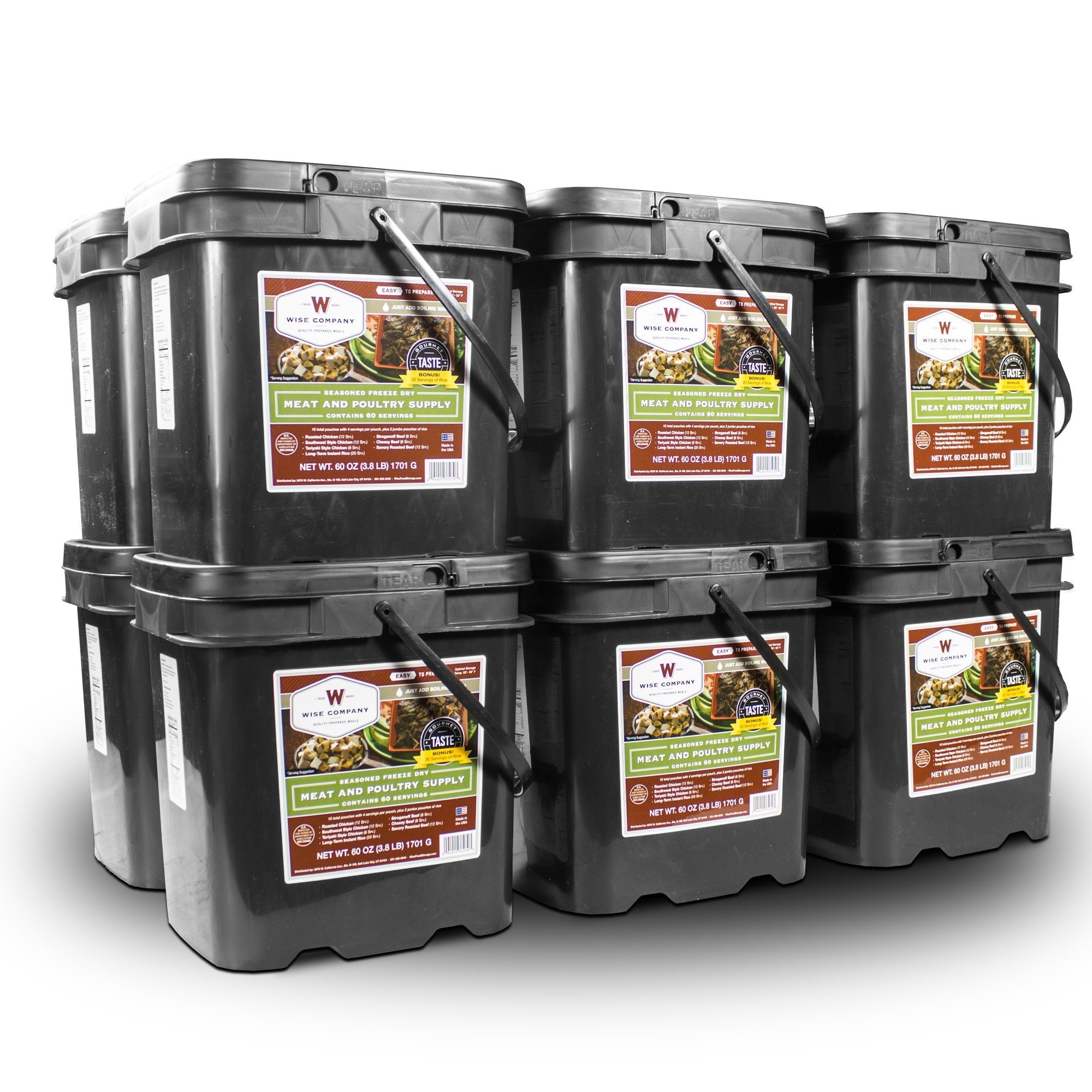 720 Serving Meat Package Includes: 12 Freeze Dried Meat Buckets 720 Serving Meat Package Includes: 12 Freeze Dried Meat Buckets