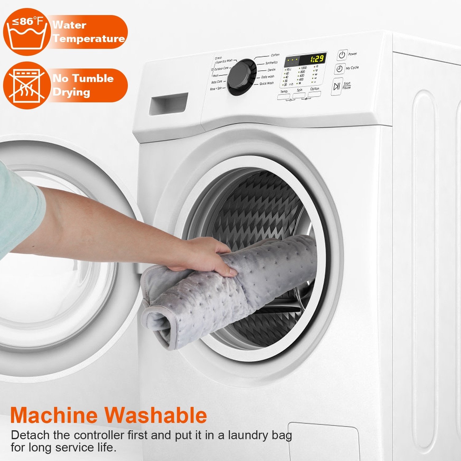 *Machine Washable*:This pad can be washed with machine. Just detach the controller and put it into machine. Tips:No tumble drying!