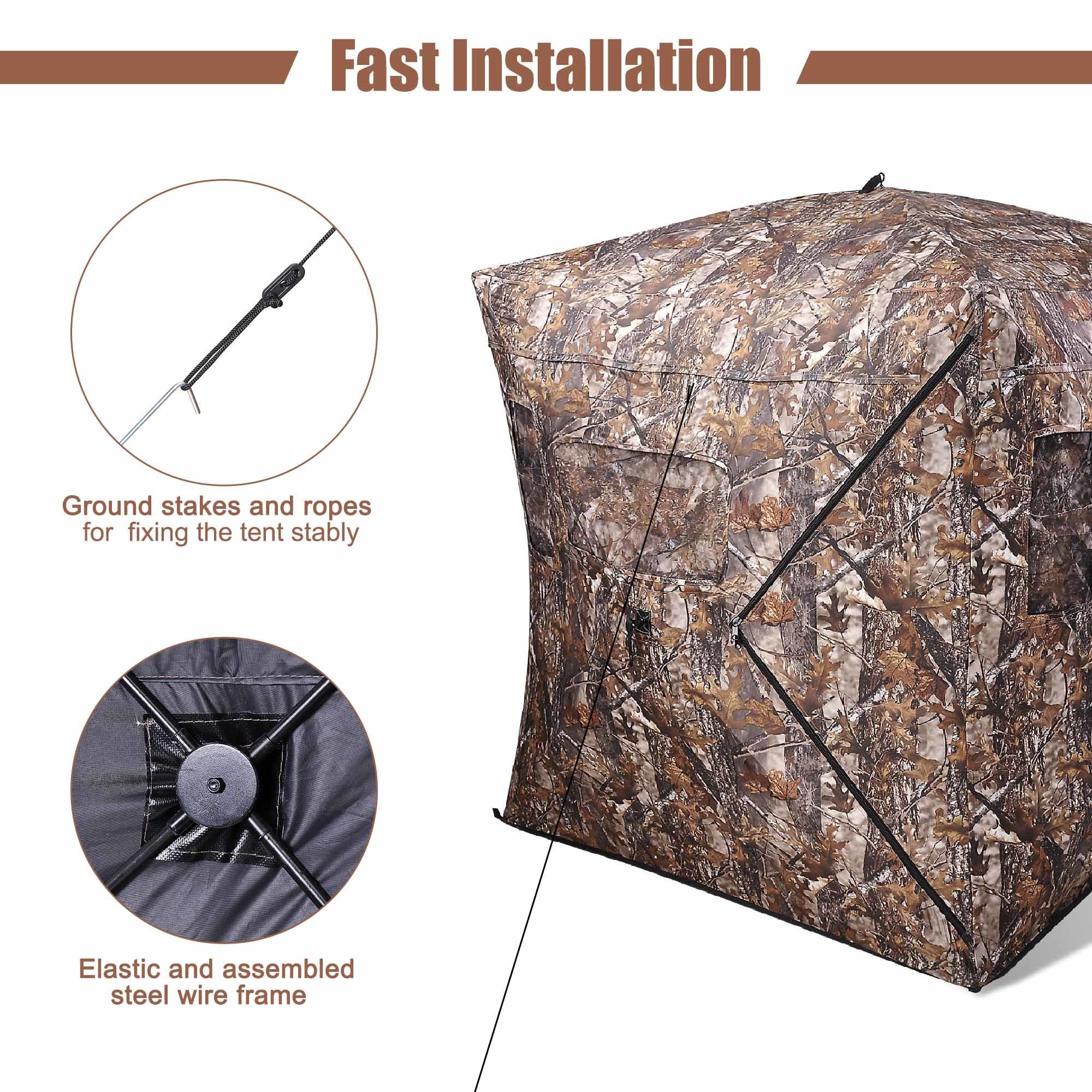 Portable & Collapsible - 72" x 71 15/16" x 65" professional 2-person hunting blind tent features collapsible and pop-up design for quick setting up and taking down; with carrying case for easy storage and transportation; lightweight and portable size are ideal for outdoor gun or bow hunting