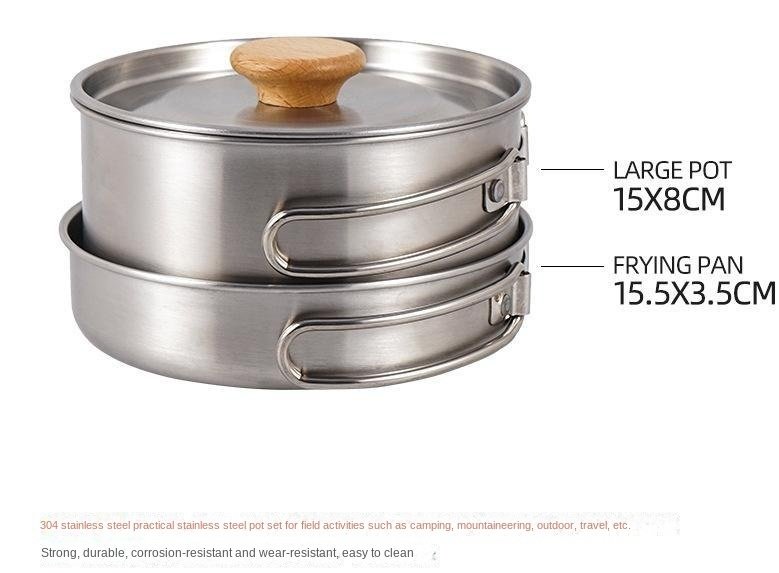 Home > Outdoor hiking 304 stainless steel pot folding handle camping portable frying pan soup pot home picnic cookware set