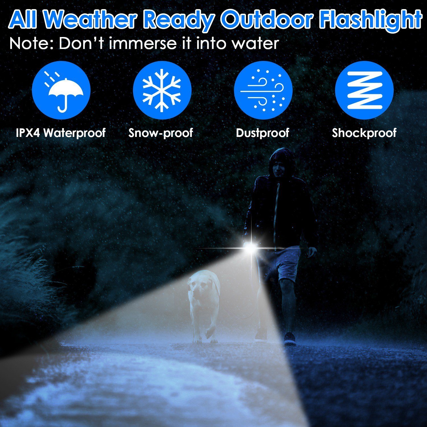 4.This IPX4 waterproof flashlight can be used under rainy weather